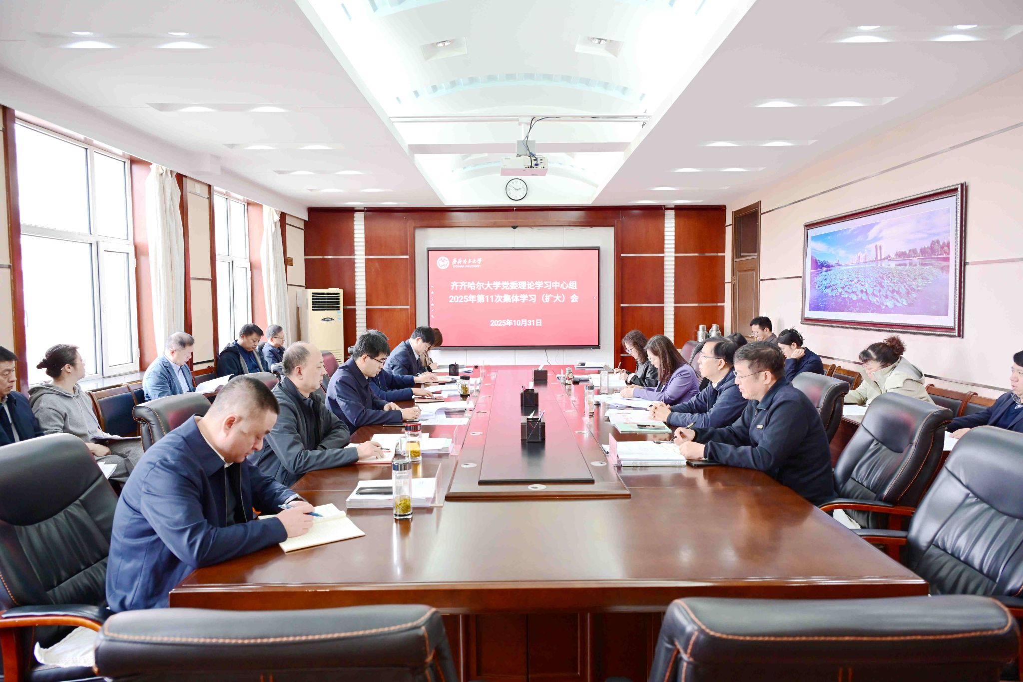 10月31日上午,學(xué)校黨委理論學(xué)習(xí)中心組在辦公樓504會(huì)議室召開2025年第11次集體學(xué)習(xí)(擴(kuò)大)會(huì),專題學(xué)習(xí)研討黨的二十屆四中全會(huì)精神。校黨委書記丁宏主持會(huì)議并講話。會(huì)上,與會(huì)同志集中學(xué)習(xí)了習(xí)近平總書記在黨的二十屆四中全會(huì)上所作的報(bào)告和重要講話精神、習(xí)近平總書記《關(guān)于<中共中央關(guān)于制定國民經(jīng)濟(jì)和社會(huì)發(fā)展第十五個(gè)五年規(guī)劃的建議>的說明》《中共中央關(guān)于制定國民經(jīng)濟(jì)和社會(huì)發(fā)展第十五個(gè)五年規(guī)劃的建議》。副校長、黨委...